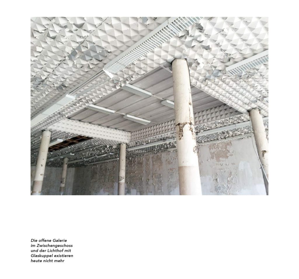 Veränderungen. Zwar kann der grundsätzliche Charakter der Fassade bis auf weiteres erhalten bleiben, vor allem im Inneren werden jedoch räumliche Qualitäten eingebüßt. So fallen die Verkleidung der offenen Galerie im Erdgeschoss sowie der Verschluss des Lichthofs und der Glaskuppel vermutlich in diese Episode. Mangelnde Instandsetzung in der Nachwendezeit bis heute wirken sich negativ auf den Allgemeinzustand des ehemaligen Warenhauses aus. Trotz allem hat sich das enorme ästhetische Potential des Gebäudes und seine infrastrukturelle Bedeutung im Gesamtbild Neuruppins über die Jahrzehnte erhalten. Geplant sind nun eine aufwändige Sanierung des Gebäudes sowie ein Fassadenentwurf, der sich am rationalistischen Stil der 30er Jahre orientiert. Es wird Zeit diesen besonderen Ort wieder zu beleben!
